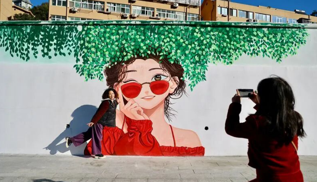 在茅箭区京东路,原本单调的墙体变为充满艺术感的长廊,吸引市民游客争相拍照打卡。十堰市城市文明创建中心供图