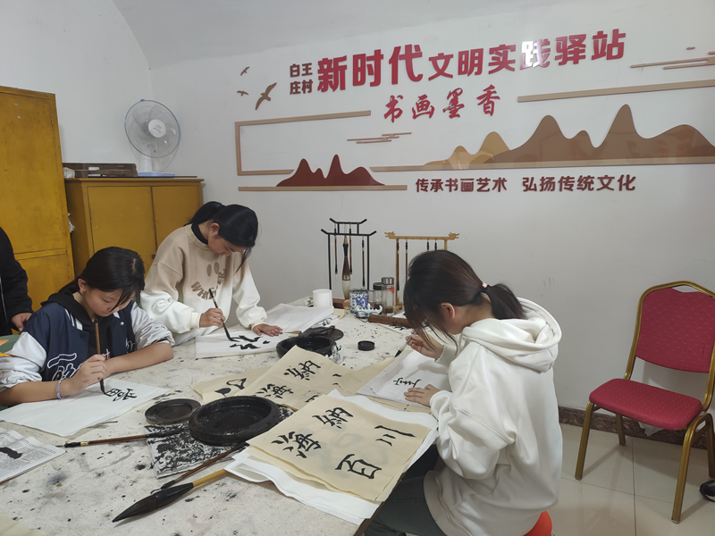 10月14日,石家庄市井陉县上安镇白王庄村新时代文明实践驿站书画墨香屋。新华网 李然 摄
