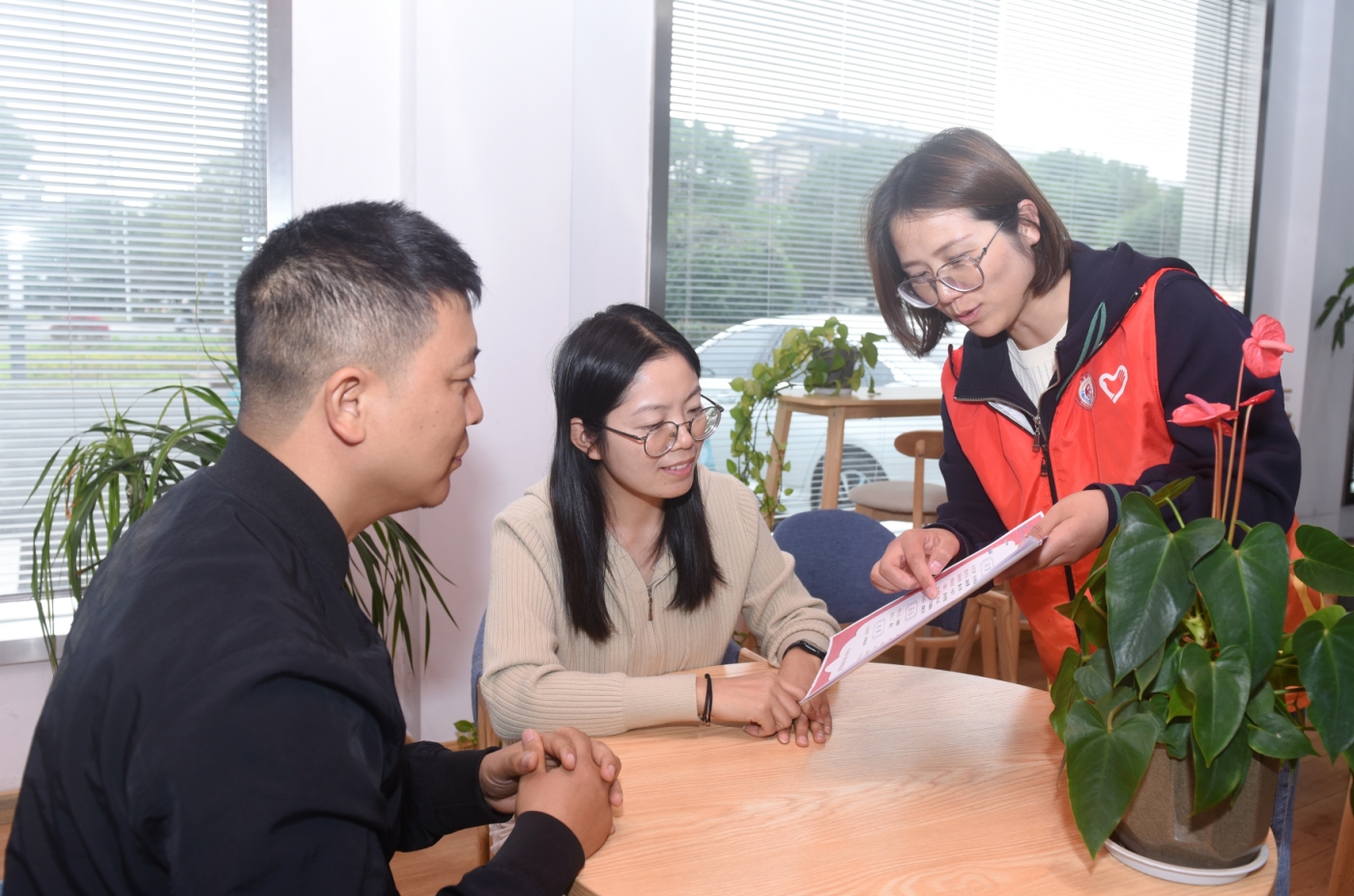 志愿者向村民宣传“平湖味·简约婚宴菜单”。