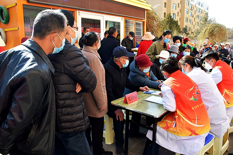 临泽县“新时代文明实践集中服务日”当天,社区组织志愿者走进新时代文明实践广场为居民提供“零距离”义诊服务。甘肃张掖市文明办提供