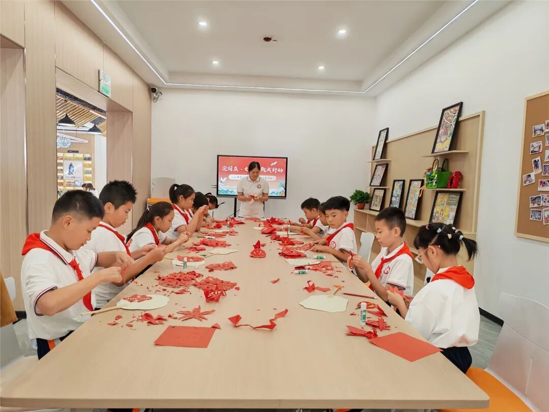 安化县妇女儿童活动中心,小朋友们在志愿者带领下剪纸
