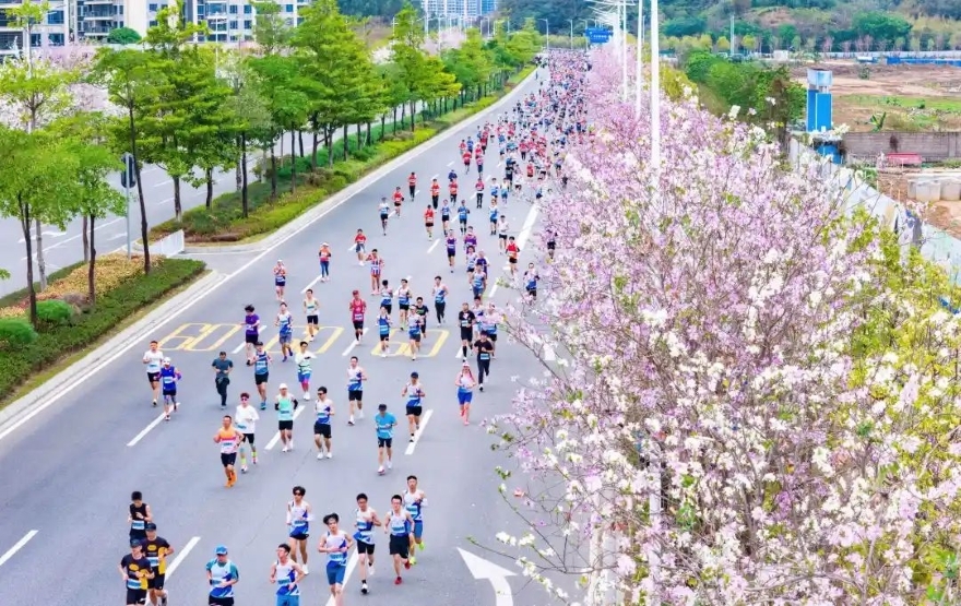 2025年3月,马拉松选手奔跑在清远的赛道上。清远日报签约摄影师 刘献文 摄
