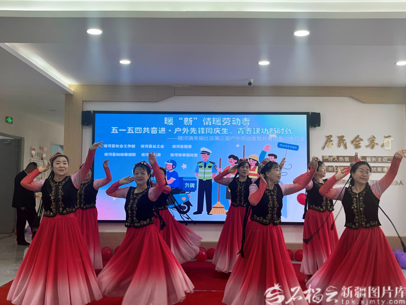 4月30日,幸福社区“舞动精河”舞蹈队在表演节目。娜合木古丽·可心佰摄