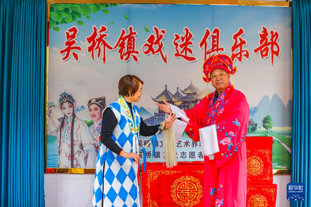 10月26日,在江苏省扬州市江都区吴桥镇文化艺术活动中心,该镇文化志愿者协会扬剧分会会员在排练扬剧。新华社发(任飞 摄)