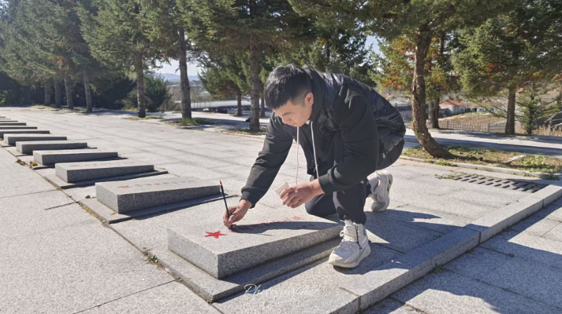 “春天扫沙土,夏天拔杂草,秋天扫落叶,冬天除冰雪……这些活儿是日常。今天,还要给几位无名烈士的墓重新描红。”烈士陵园的外围日常巡查完毕后,陵园内的活儿也不少。给墓碑补漆描红,修复园区内开裂起翘的理石台板地面,偶遇极端天气时还要清理陵园内外散落的树枝等。