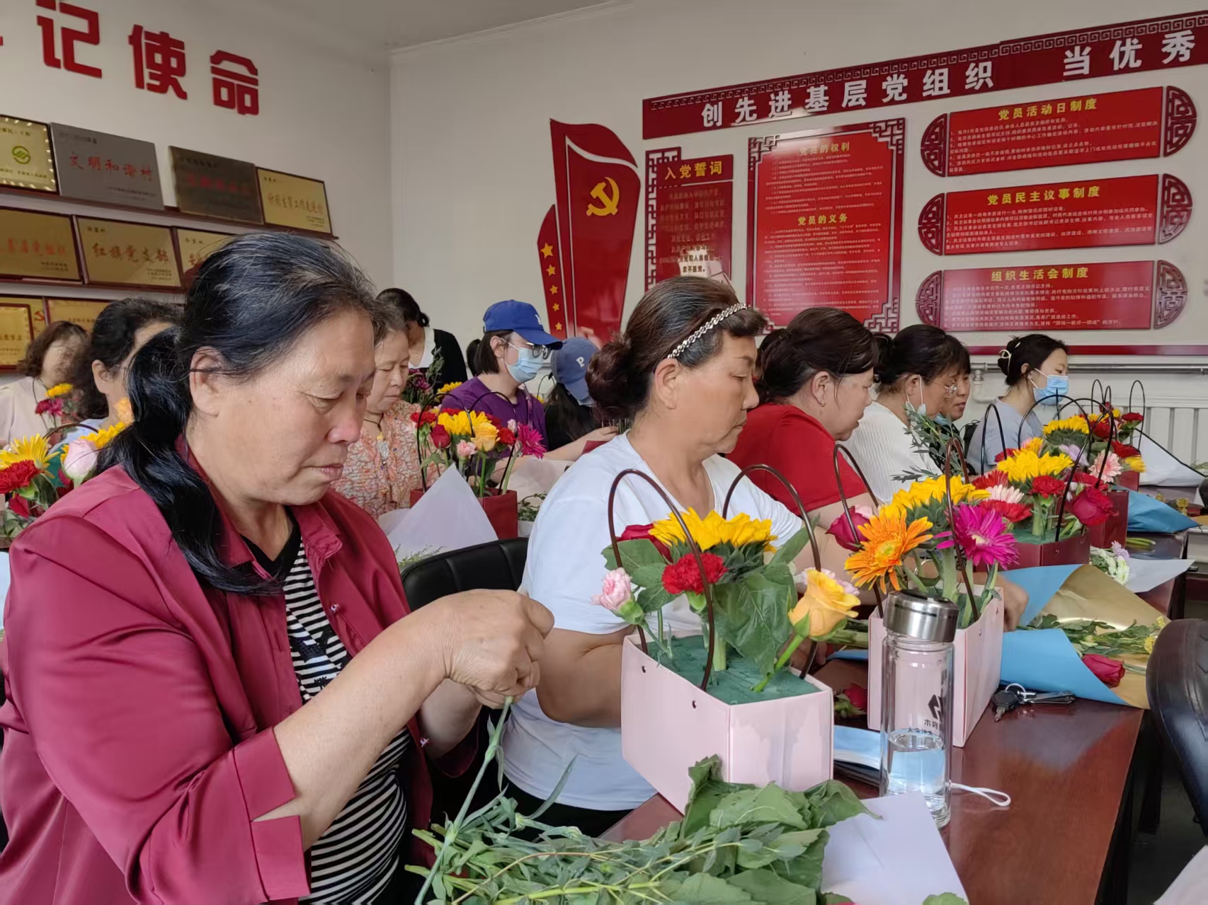 西堡村举办妇女节插花活动。