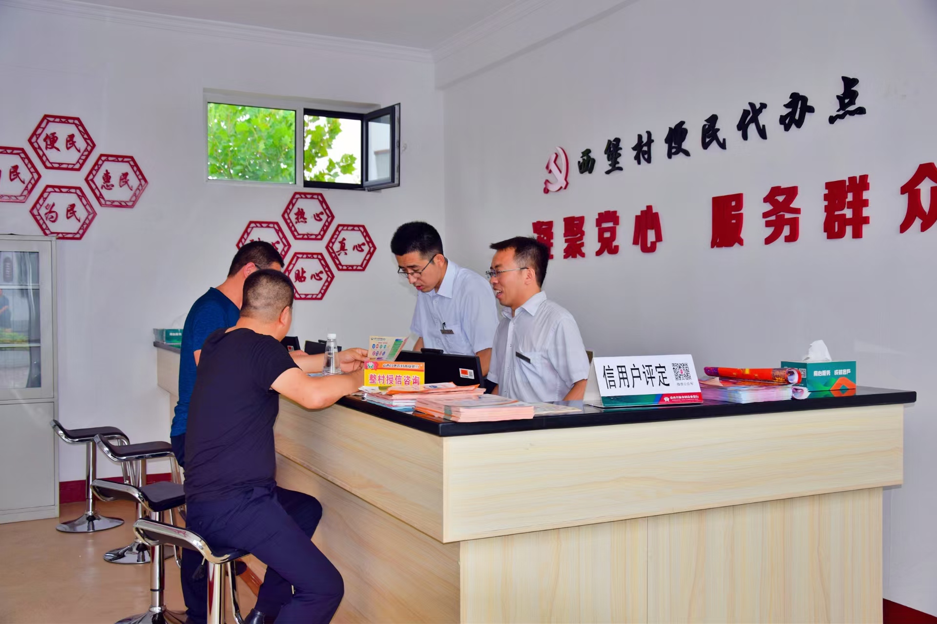 西堡村便民代办点的工作人员正在给乡亲们提供便民服务。